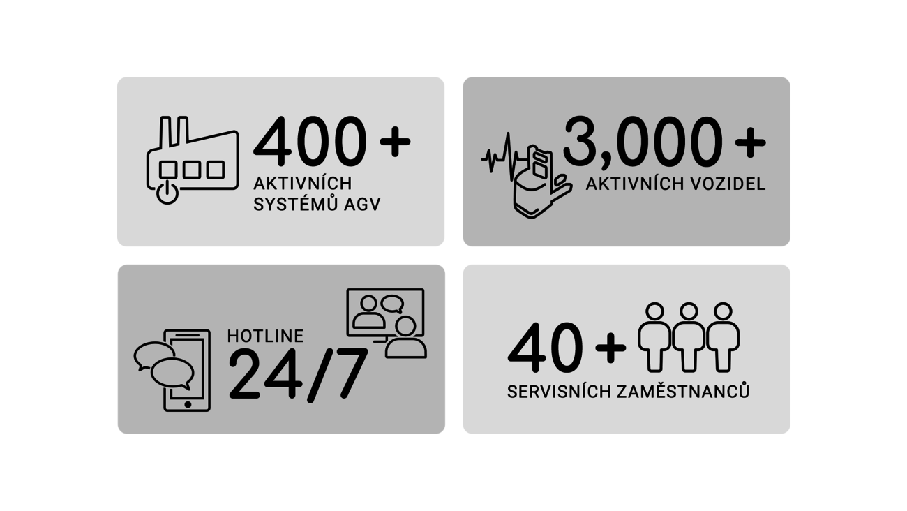S více než 55 % našich instalovaných automatizovaných řízených vozidel (AGV) v regionu DACH a 45 % po celém světě vám nabízíme mezinárodní servis AGV, který reaguje rychle, je lokálně dostupný a splňuje nejvyšší standardy. Naše globální servisní síť vlastních poboček a certifikovaných partnerů zajišťuje krátké reakční časy, vysokou dostupnost systému a kompetentní podporu – přímo tam, kde jsou vaše AGV v provozu. Ať už se jedná o údržbu s UVV kontrolou, výkonnostní workshopy, dodávku náhradních dílů, logistiku nebo úpravy systému – společně nabízíme služby na míru, které maximalizují provozní spolehlivost a dostupnost.