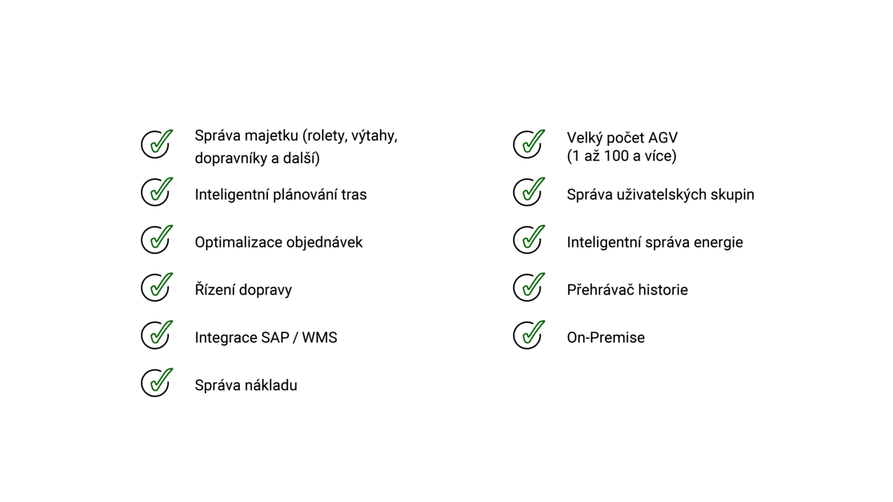 Řídicí systém AGV „Transport Manager“ je centrální inteligencí všech automatizovaných vozidel ve vašem zařízení. Koordinuje všechny přepravní zakázky, plánuje optimální trasy a monitoruje celou vozovou flotilu v reálném čase.