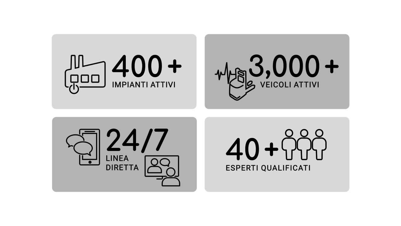 Leader nel mercato dei sistemi di trasporto senza conducente (tecnologia AGV) nell'area DACH (Germania, Austria, Svizzera) con una copertura superiore al 55% e una presenza globale inotrno al 45% offriamo un servizio AGV funzionante a livello internazionale capace di intervenire rapidamente, con una diffusione capillare che e soddisfa le norme tecniche di settore e gli standard di sicurezza più elevati. La nostra rete di assistenza globale, costituita da sedi locali ed estasa con il supporto di partner certificati, garantisce tempi di reazione brevi, massimizza la disponibilità degli impianti e fornisce assistenza competente direttamente nelle vostre sedi.