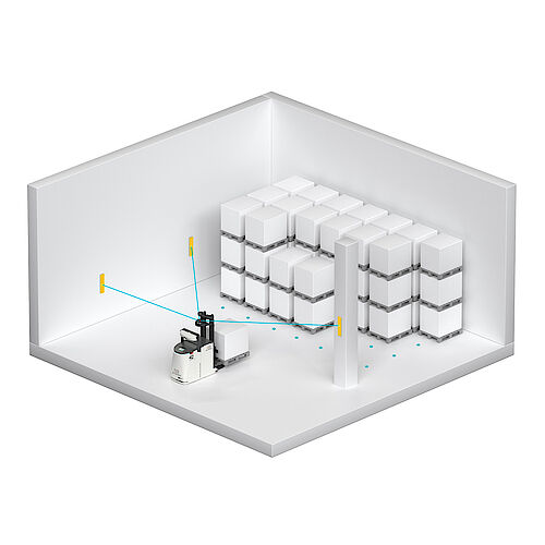 Reflektoren sind nur dort nötig, wo keine Umgebungsnavigation möglich ist – das spart Zeit und Kosten.